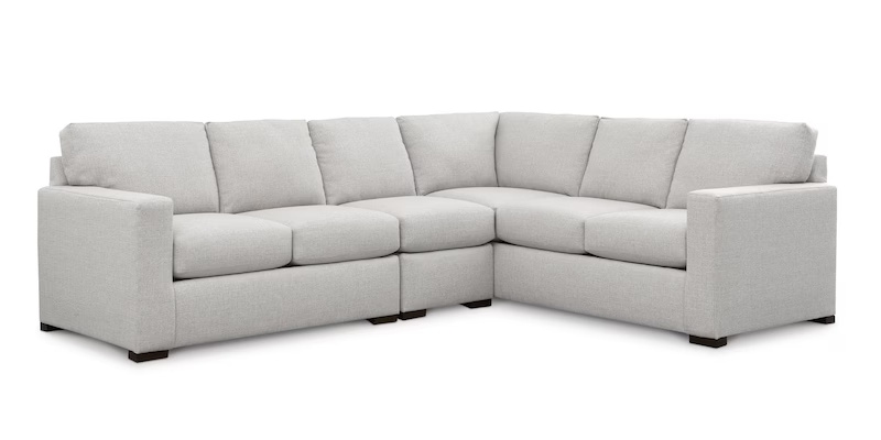Right-sized for smaller spaces, the 2-cushion Anson L-Shaped Sectional creates a perfect spot for relaxing and cozy conversation. You'll love sinking in to the soft, attached boxed back cushions and top-stitched seat cushions. Easygoing, transitional style shows in the clean-lined track arms and low block legs with Brindle finish.