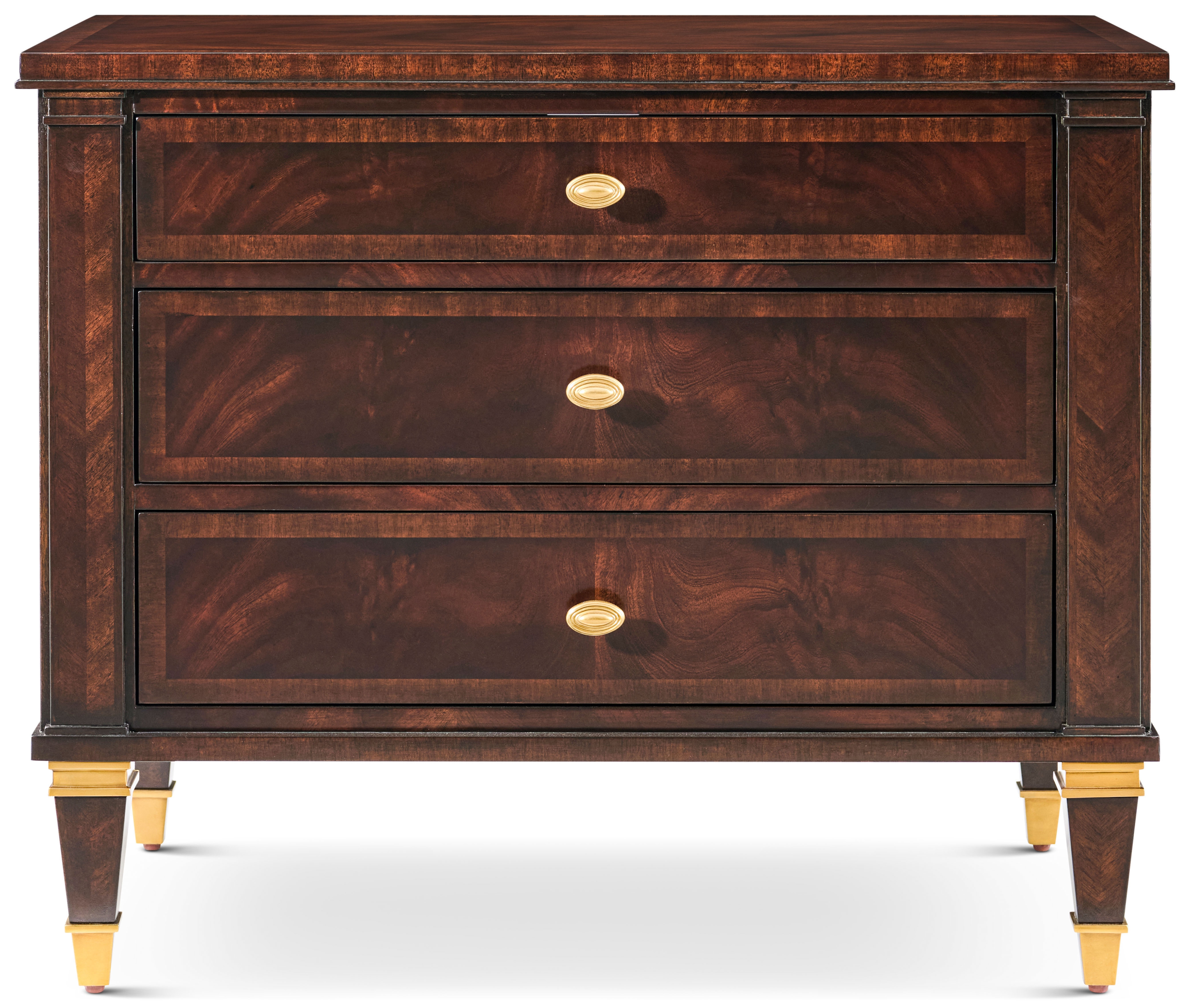 The Marlborough by Alexa Hampton Transitional Three-Drawer Nightstand with Stout Tapered Legs, made by Theodore Alexander, is brought to you by Birmingham Wholesale Furniture. Birmingham Wholesale Furniture is a local furniture store, serving the Birmingham, Mountain Brook, Hoover, and Vestavia Hills, Alabama area. Product availability may vary. Contact us for the most current availability on this product.