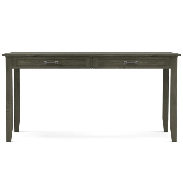 Our Revere Desks take the group's unfussy traditional style and add two broad drawers with your choice of nine curated hardware styles. Two available sizes lend themselves to many rooms, from a kid's room to an adult's home office.