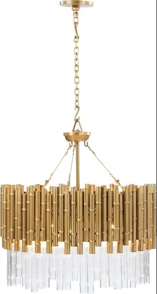 Kesden Media Round Chandelier in Brass Finish with Glass Bamboo Accents