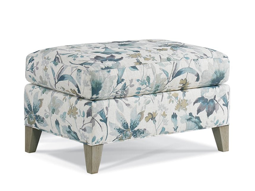 The Transitional Accent Ottoman with Wood Legs, made by Sherrill,