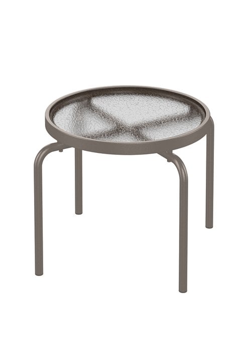 moreThis resilient Acrylic 20"" Round Stacking Table from Tropitone features an attractive ""hammered"" textured acrylic top. The thick acrylic top is weather and shatter resistant, making the outdoor table as tough as it is stylish. When ease of maintenance, durability and safety are of concern, acrylic tops are the ideal solution.
