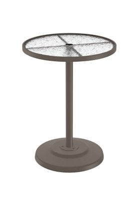 moreThis resilient Acrylic Round 30"" Bar Table from Tropitone features an attractive ""hammered"" textured acrylic top. The thick acrylic top is weather and shatter resistant, making the outdoor table as tough as it is stylish. When ease of maintenance, durability and safety are of concern, acrylic tops are the ideal solution.