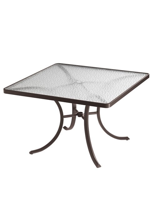 The Acrylic Tables Acrylic 42" Square Dining Table with Umbrella Table, made by Tropitone,