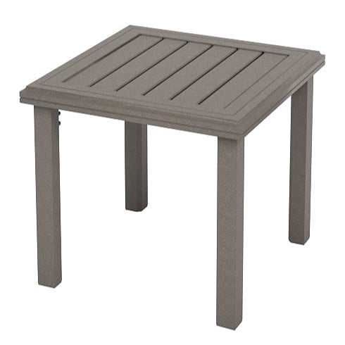 The Amici Amici 24" Square Aluminum End Table w/Slat Top, made by Tropitone,