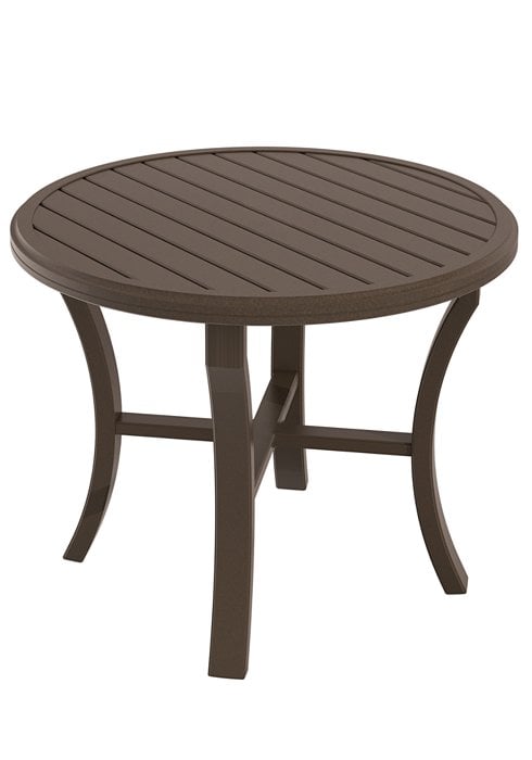 The Banchetto Banchetto 36" Round Slat-Top Dining Table, made by Tropitone,