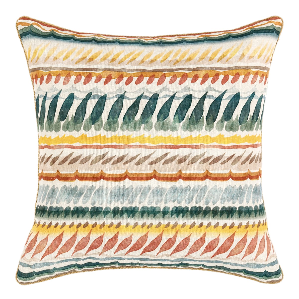 Natural Jute Piping Edge Finish, Inspired by Mediterranean Pottery, 100% Natural Linen Front and Back, Hidden YKK Zipper, Hand-Painted Design, Luxury Feather & Down Insert