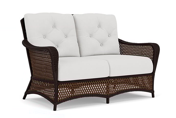 moreFeaturing exclusive SunLoom vinyl in caramel or bisque, the Grand Traverse Loveseat offers an extensive assortment of seating and dining options that will withstand the test of time. Waterfall cushions and open-weave vinyl elevate a classic traditional frame and add a special touch.