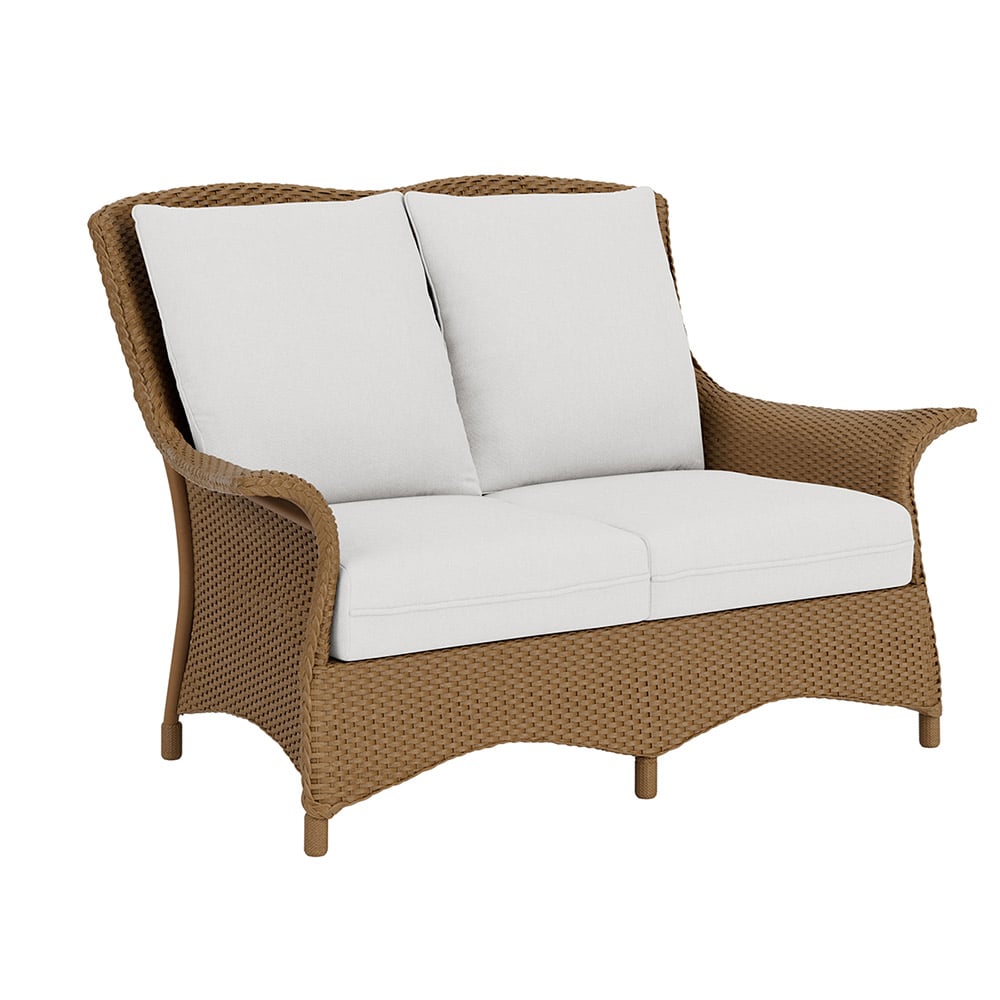 moreThe Mandalay Loveseat features a novel five-strand weave that emulates the texture of natural sea grass. Wide arms and loose back pillows maximize comfort, while subtle curves invite you to settle in and stay awhile.