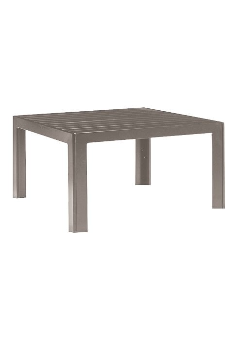 The Slat Aluminum 36" Square Coffee Table, made by Tropitone,