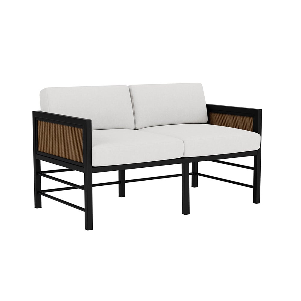 moreThe Southport Loveseat features a beveled aluminum frame with inset Lloyd Loom panels, creating a unique and eye-catching design. With the ability to combine different finishes on the frame and the loom panels, this collection offers endless possibilities to create a personalized look.