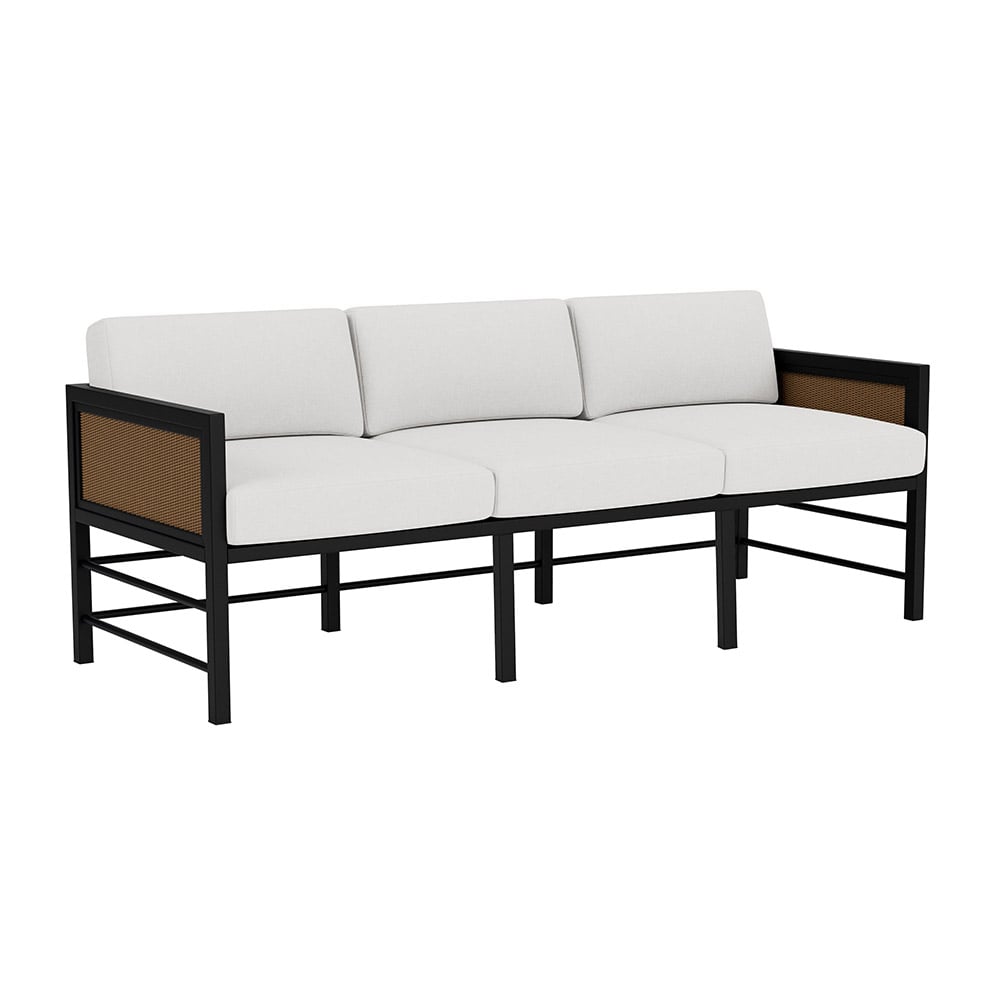 moreThe Southport Sofa features a beveled aluminum frame with inset Lloyd Loom panels, creating a unique and eye-catching design. With the ability to combine different finishes on the frame and the loom panels, this collection offers endless possibilities to create a personalized look.