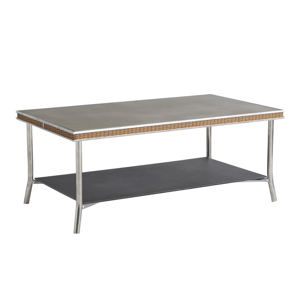 The Visions Visions 42" Rectangular Cocktail Table with Reversible Glass, made by Lloyd Flanders,
