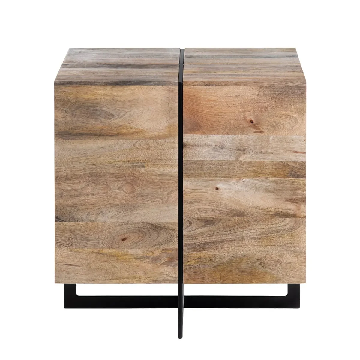 moreCrafted from durable and sustainable mango wood, this rectangular table features a warm brown finish that exudes natural beauty and complements a wide range of decor styles. The table's transitional design is elevated by its unique metal inlay and legs, which add a touch of industrial chic to its warm and inviting aesthetic. The metal inlay creates a stunning geometric pattern that draws the eye and adds visual interest to the table's surface, while the metal legs provide sturdy support and an additional layer of texture. This end table is perfect for entertaining guests, providing a spacious and sturdy surface for drinks, snacks, or decor.