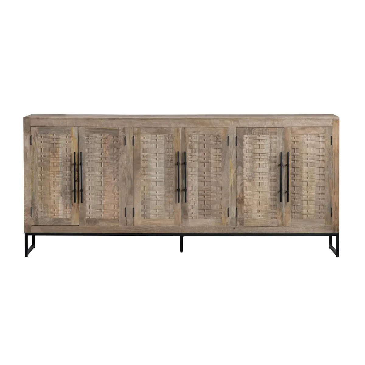 moreCrafted with meticulous attention to detail, this six-door sideboard boasts a harmonious blend of mango wood and sleek metal accents. Its captivating basket weave pattern on the doors adds an element of sophistication to any space.