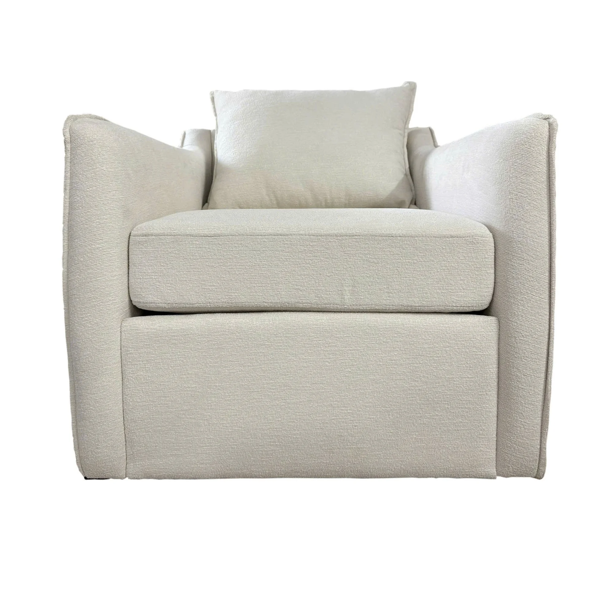 Smooth 360‑degree swivel lets you turn from chat to TV with zero effort., Plush ivory bouclé upholstery adds rich texture and neutral versatility., Deep, reversible seat cushion with high‑density foam keeps its shape., Loose lumbar pillow offers adjustable lower‑back support., Subtly flared track arms provide a sleek look and comfy perch., Due to inconsistencies of various monitors, handheld devices, lighting, digital photography, and variances that occur naturally in materials, the color you see on your screen may vary slightly from the products received.