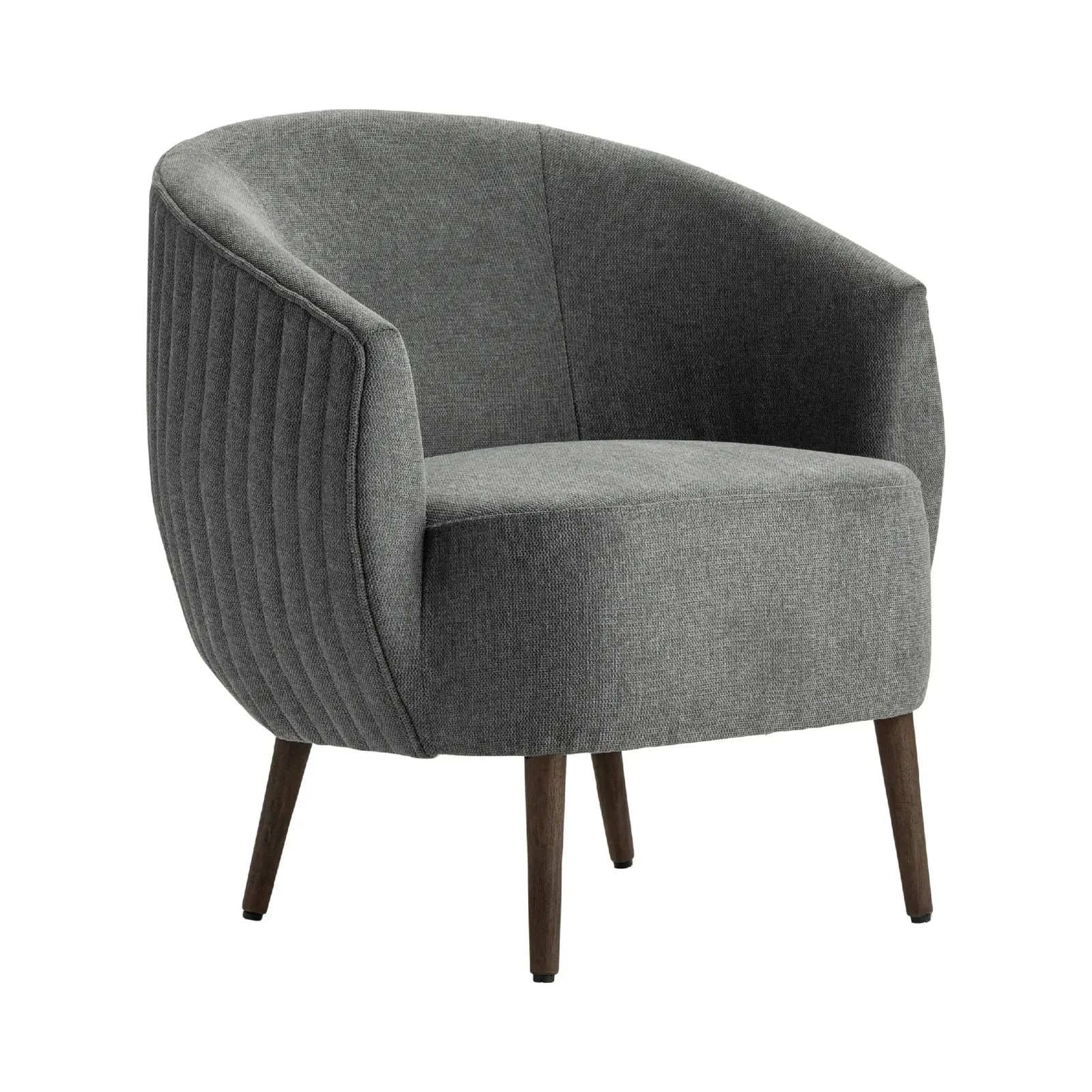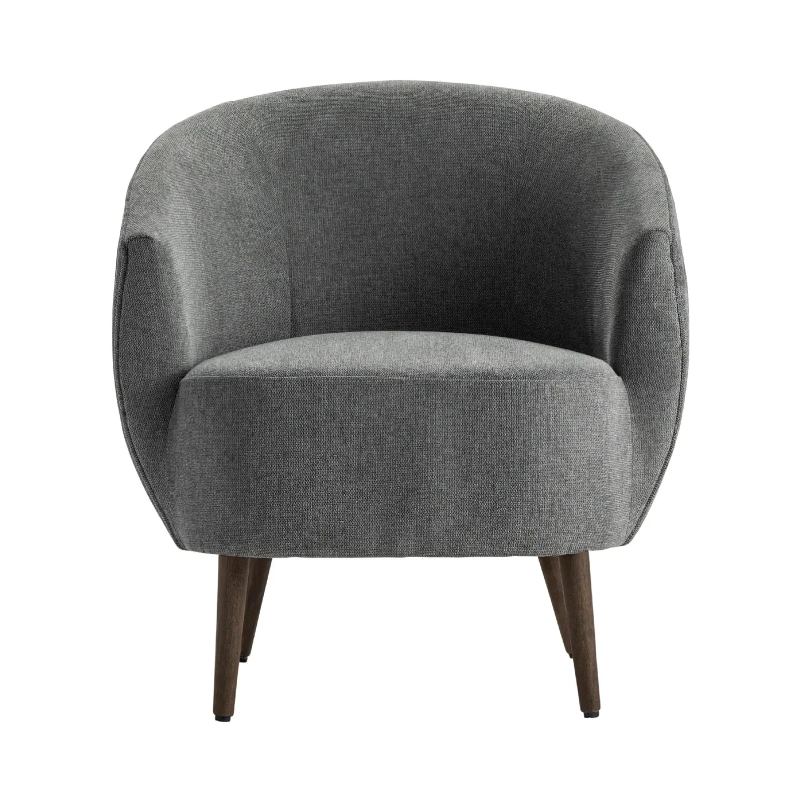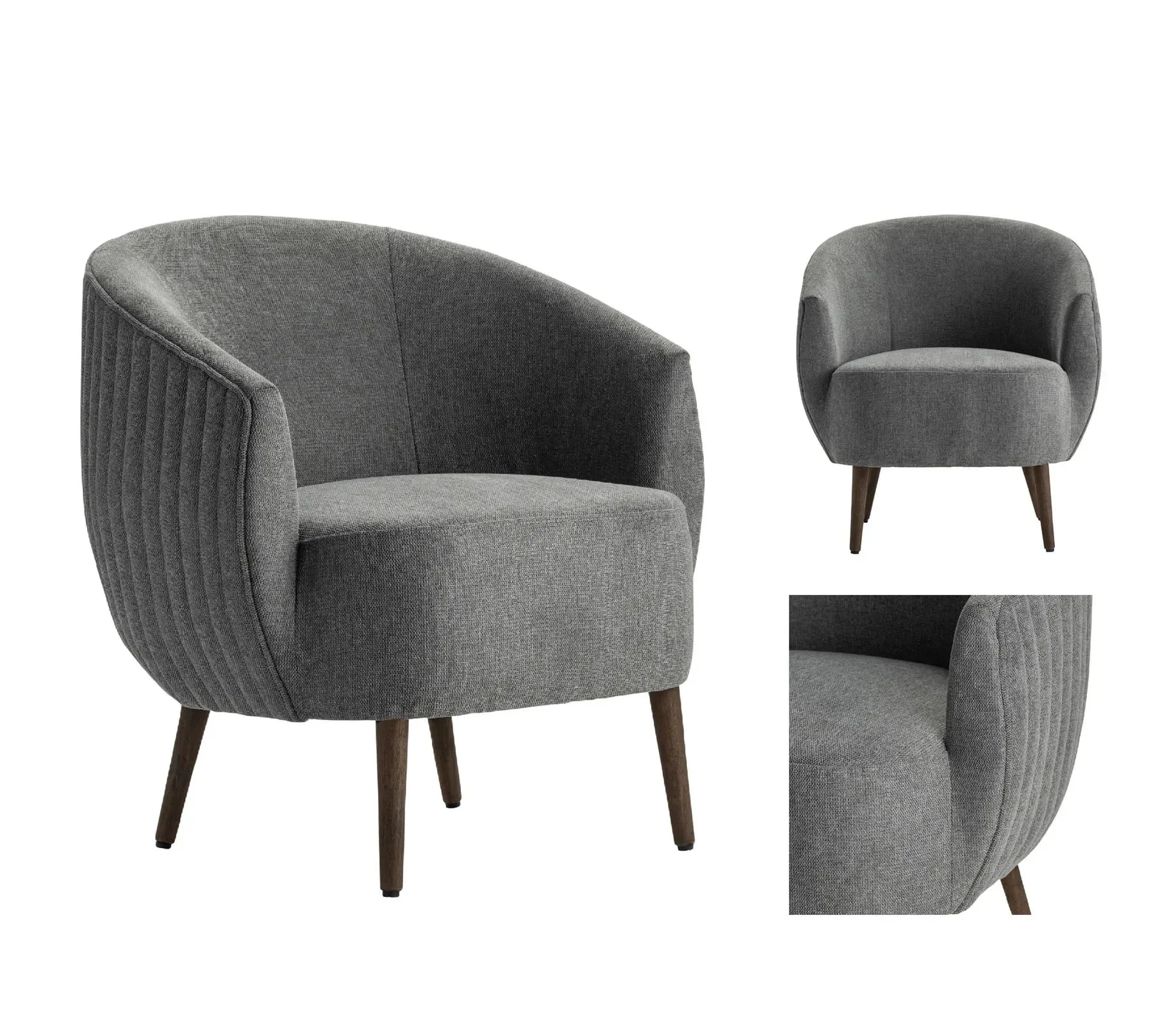 moreThe medium gray upholstered finish gives a modern feel while encircling a padded seat and wraparound back and arm rests. Get ready to curl up with a book or journal. Black rubberwood finished legs seal the modern style with a bit of flare for stability.