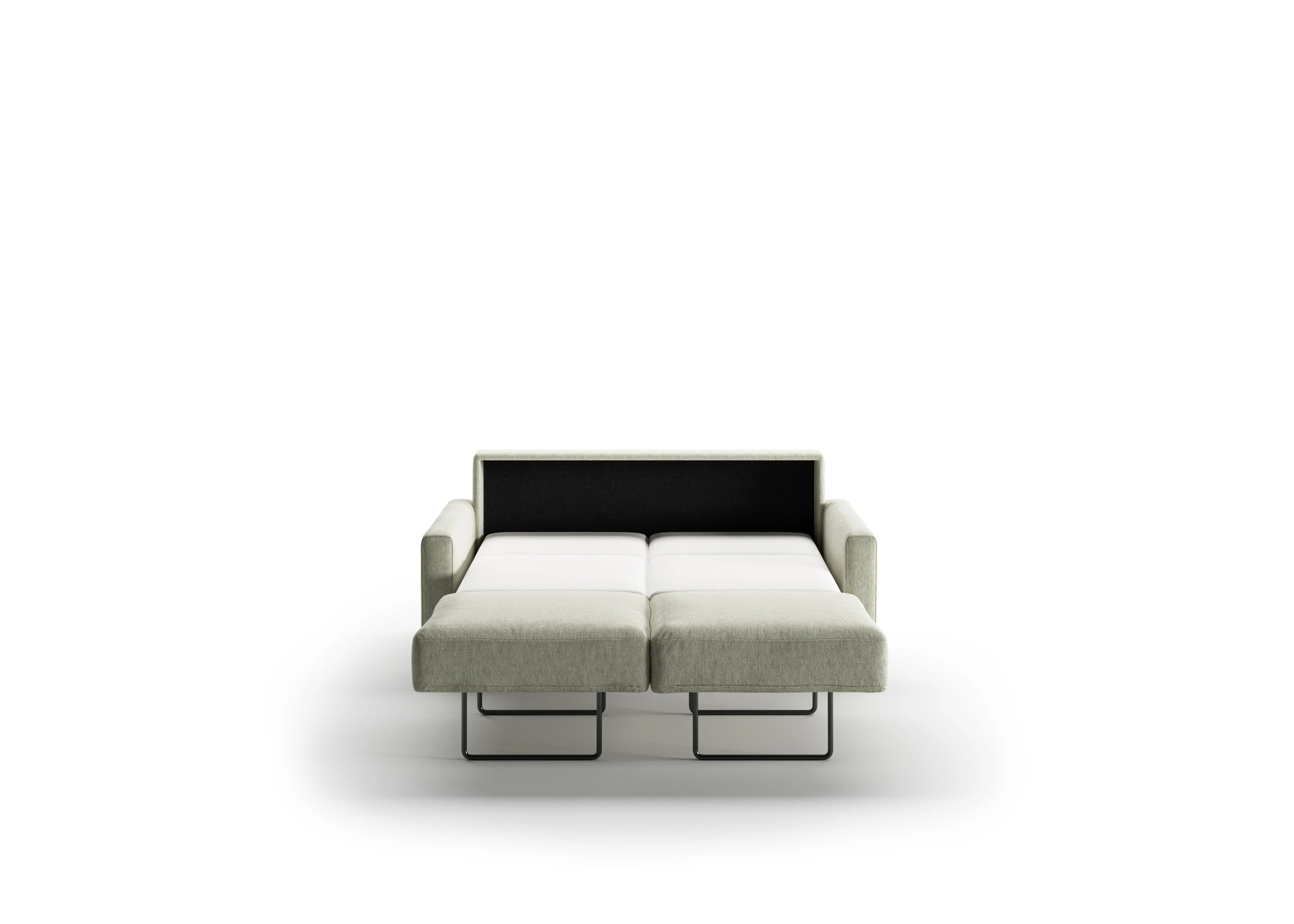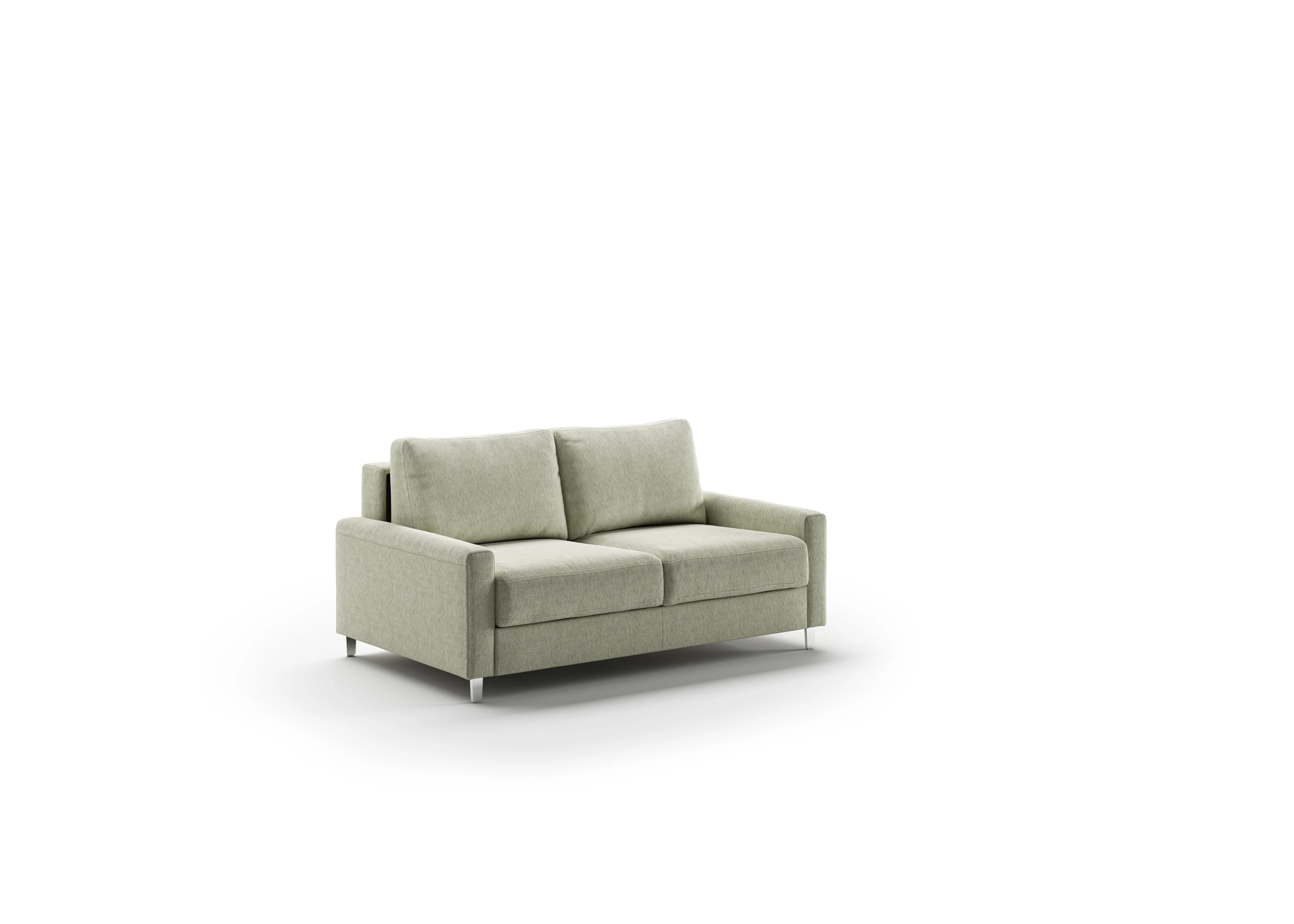 Low track arms, comfortable seat with under knee support, and its bed nests beneath its seat. Available in king to cot bed sizes to give any room more room.
