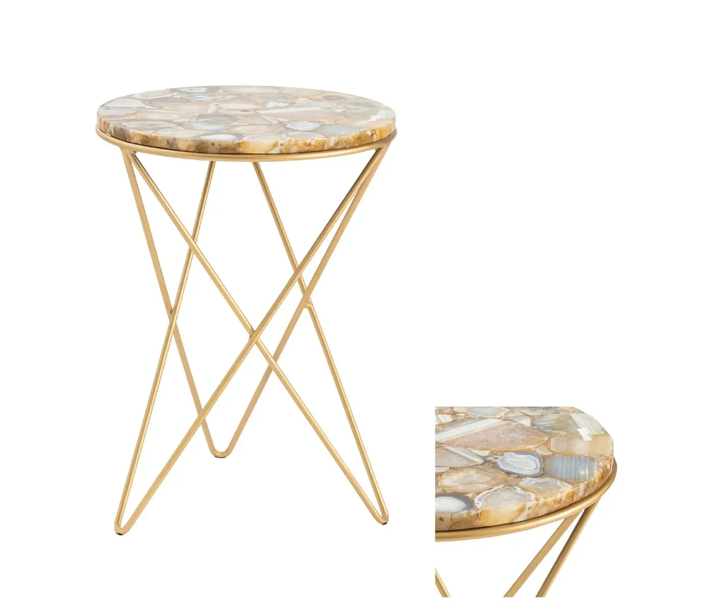 moreThe gold finish of the metal legs complements the white and gold design of the top to give you a brilliant piece that brings elegance to your home. This round, transitional table will blend with any decor style.