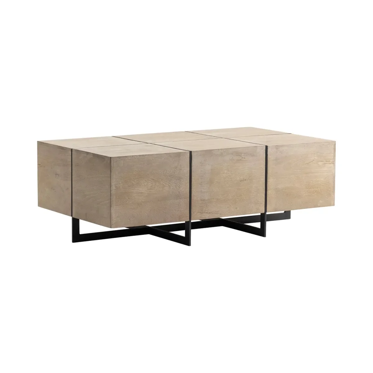 moreThe black legs divide this rectangular table into six cubes. A white wash finish and the transitional, modern style allow this piece to blend with any decor style. Gather your friends around this simplistic cocktail table for a night of drinks.