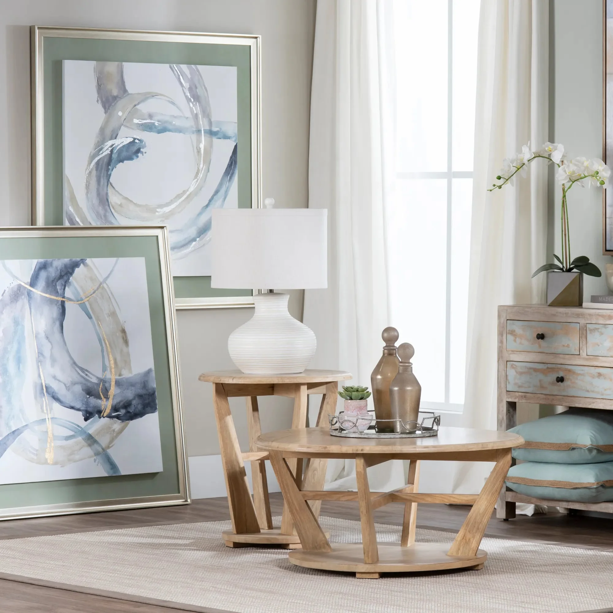 moreThis natural mango wood design showcases four angular-shaped legs with a rounded, platform base and tabletop. The final touch is a simple, clear varnish that accentuates the organic tones and texture of the wood grain for a final design that celebrates the essence of raw, natural materials. Simple yet elegant, this thoughtfully curated cocktail table is guaranteed to be the next focal piece in your home.