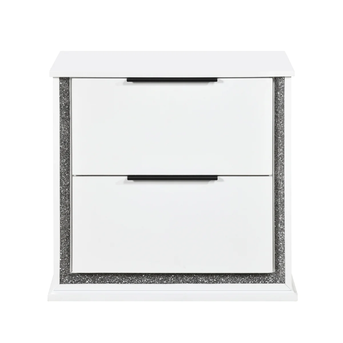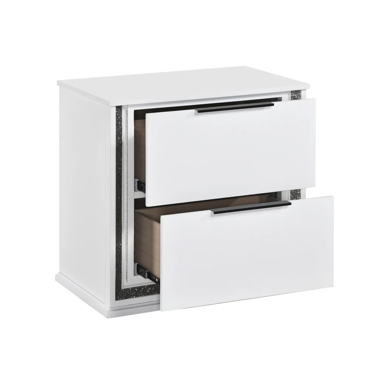Constructed from high-quality wood, this nightstand boasts a sturdy and durable design that will withstand the test of time. The white wood tone gives it a clean and crisp look that will complement any bedroom décor. Whether you're looking to add a touch of glamour or simply need a reliable and functional nightstand, this piece is sure to meet your needs.