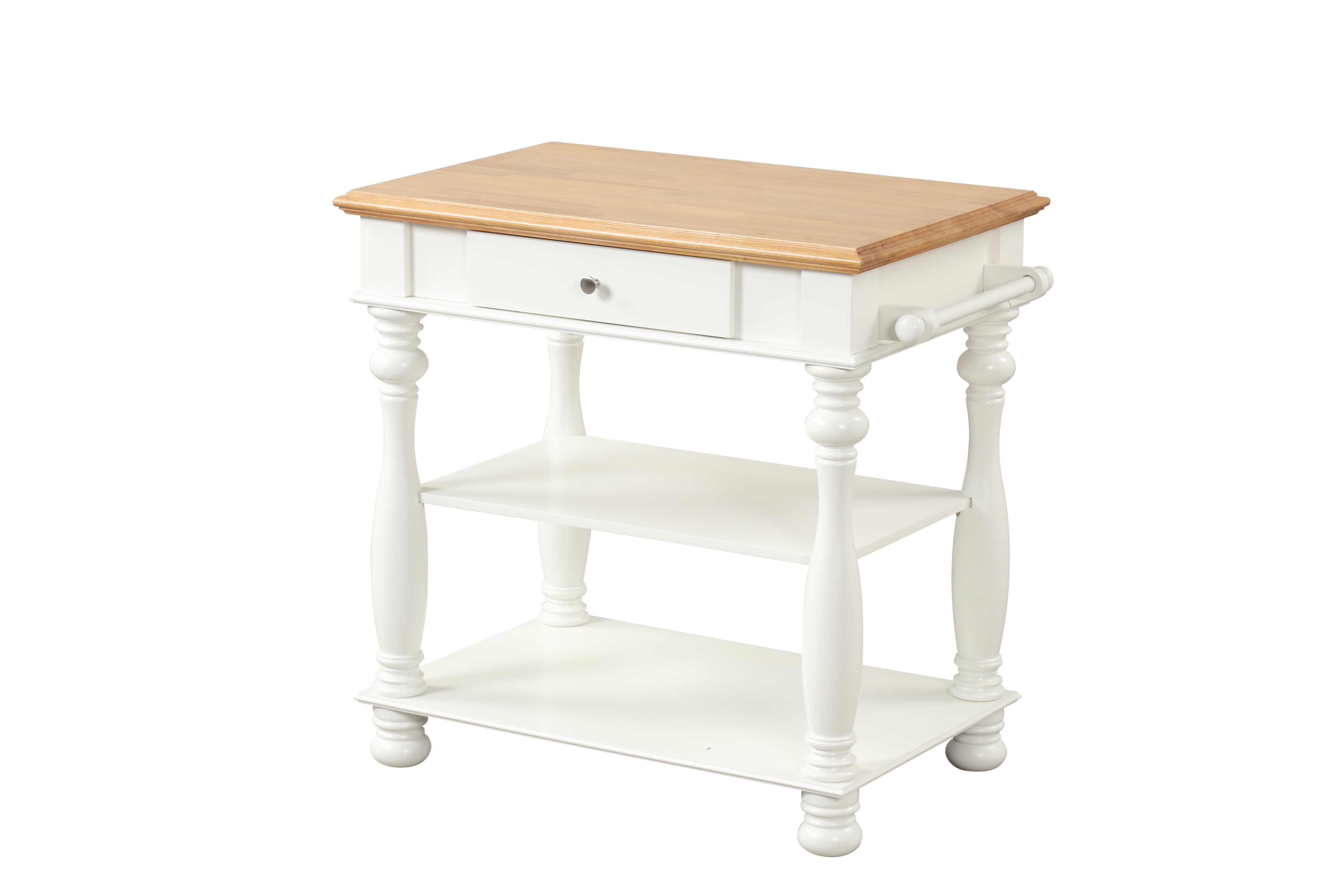 moreIntroducing the Avondale 36'' Wide Kitchen Island, the perfect addition to any kitchen space! With a spacious surface for food prep or casual meals, this kitchen island is the ultimate solution for busy home cooks. The island's clean-lined design is complemented by classic turned detailing on four legs and traditional bun feet for a French-country touch. This kitchen island comes in a neutral finish with a natural brown countertop, providing a bit of contrast that will stand out in your space. The natural wood finish also brings warmth and sophistication to any kitchen. Two lower shelves provide ample room for dinnerware and appliances, making it easy to keep your kitchen organized and clutter-free. In addition, the Avondale Kitchen Island features a single drawer that is just the spot to keep utensils and smaller items. This feature makes it easier for you to access what you need quickly while cooking. The bonus cutting board is also a great addition, providing an extra surface for meal prep. Whether you're cooking up a storm or hosting a dinner party, the Avondale 36'' Wide Kitchen Island is the perfect companion. Its spacious surface, ample storage, and classic design make it a standout piece that will enhance any kitchen space. So why wait? Get your Avondale Kitchen Island today and take the first step towards creating the kitchen of your dreams!