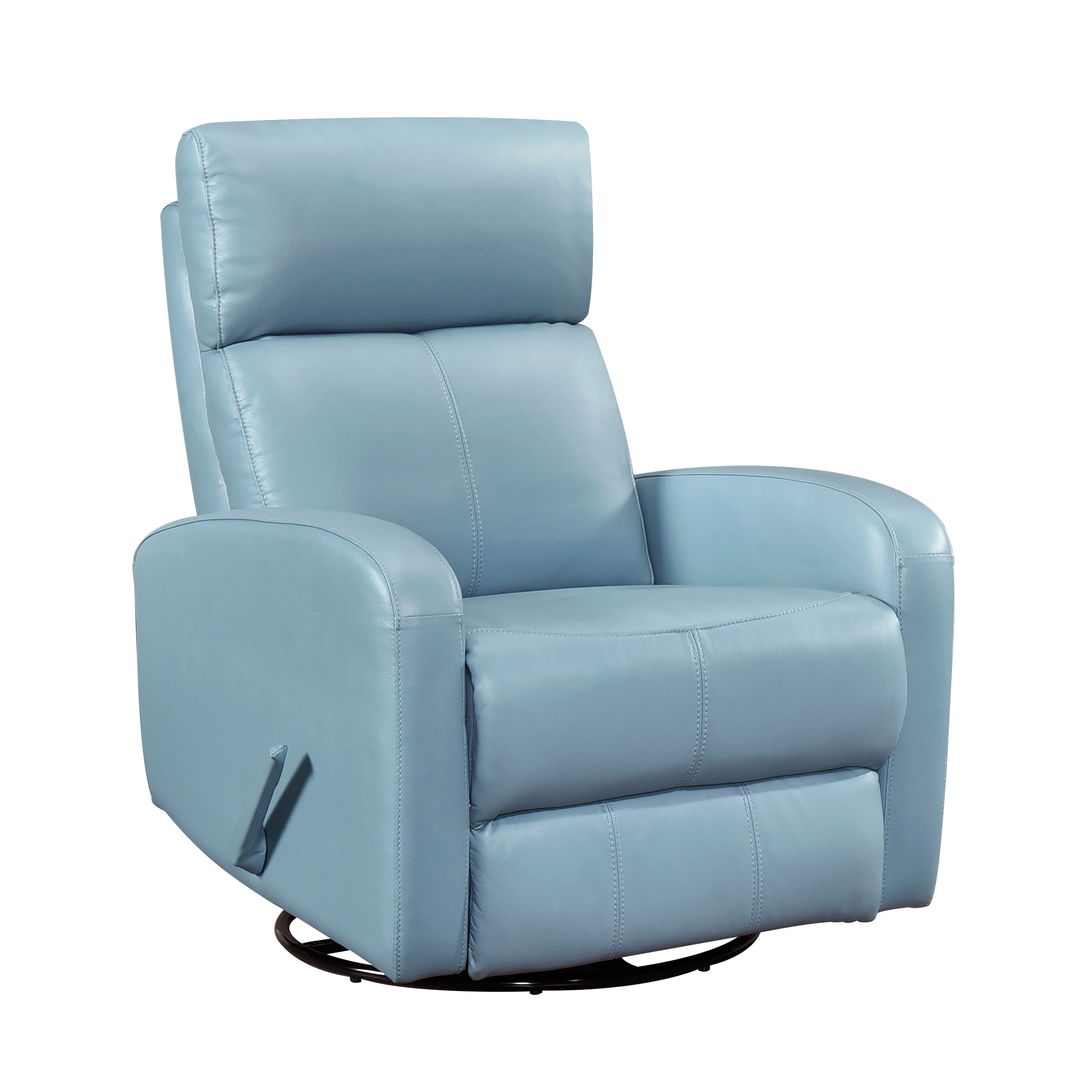 With its contemporary design style and solid color pattern, this recliner is sure to fit in with any home decor. The blue color gives it a calming and soothing ambiance, perfect for unwinding after a long day. Whether you're looking to relax and watch TV, read a book, or take a nap, this recliner is the perfect choice.