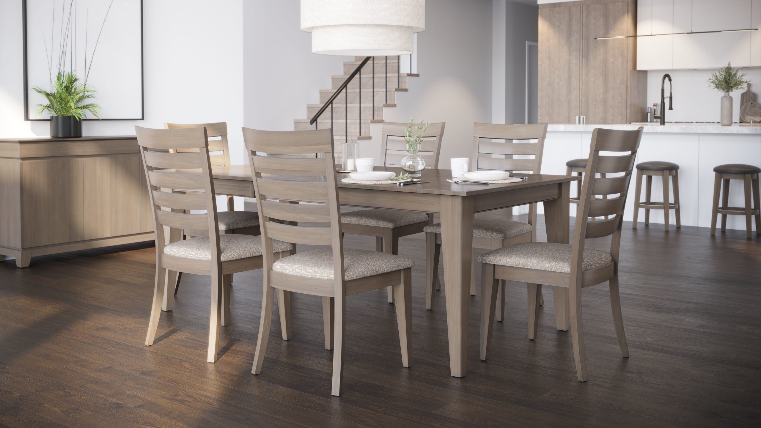 Canadel is the most important manufacturer of solid birch casual dining in North America. All made and delivered in nearly 6 weeks, Canadel stands out for the customization and warranty of its furniture. It offers different styles such as contemporary, traditional and transitional. Canadel also offers a large variety of tables : rectangular, square, boat shape, round and oval. Make your selection between our chairs, benches, buffets, servers, and also bistro tables and barstools. With more than 60 colors, 3 finishes (matte, antique and distressed) and a choice of over 200 fabrics, our collections offer you thousands of combinations to blend with your decor.