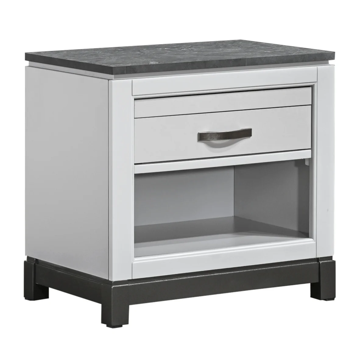 moreThis contemporary nightstand is designed to bring a touch of modern style to your bedroom. Crafted from wood in a crisp white tone, it features a clean and sleek aesthetic that will complement a variety of decor styles.
