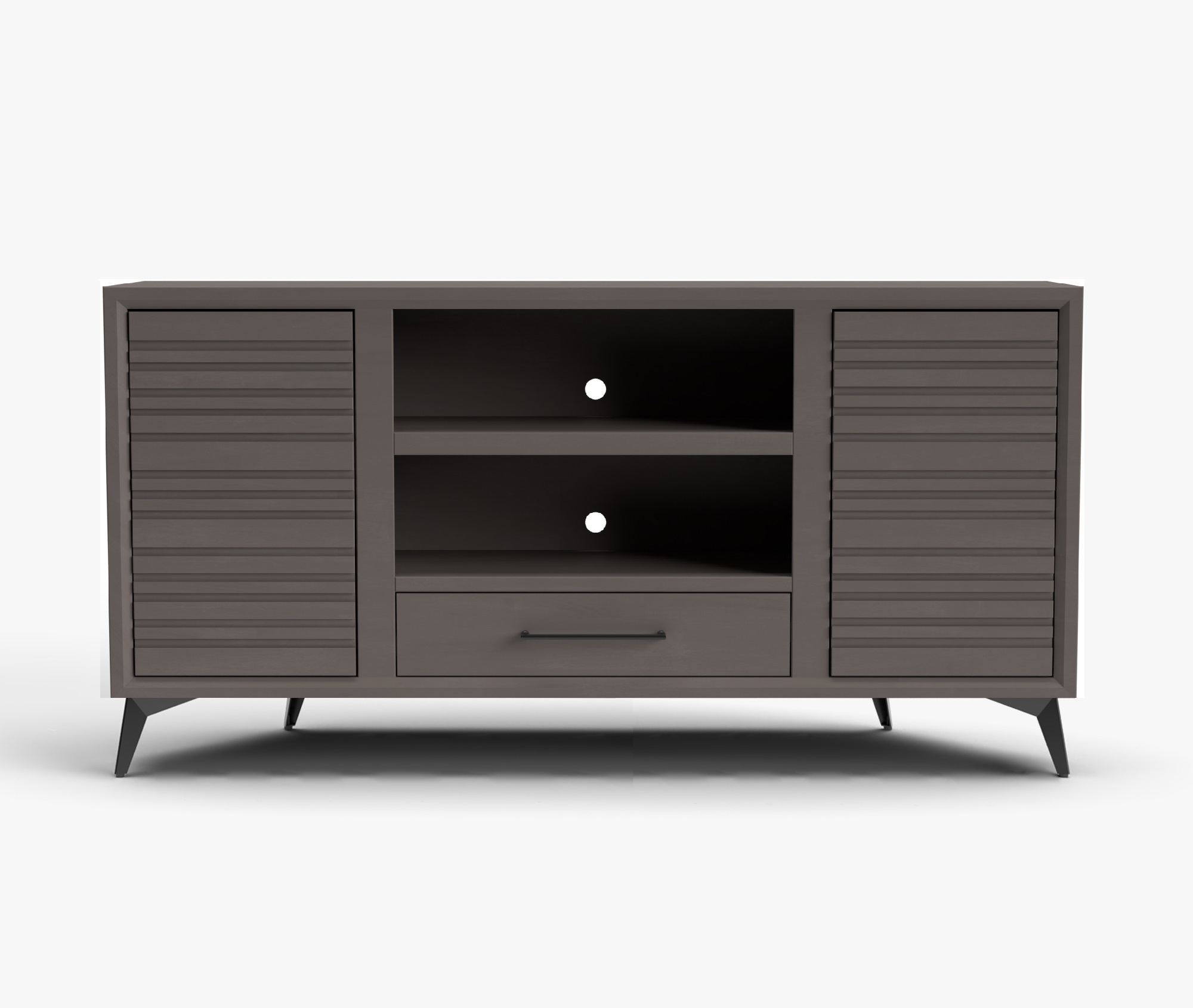 moreThis 64" corner TV stand is a stylish and functional addition to any living room. Made from high-quality wood in a beautiful gray tone, it features a mushroom-colored finish that adds a touch of warmth and sophistication. The transitional design ensures it will fit seamlessly into your existing decor.