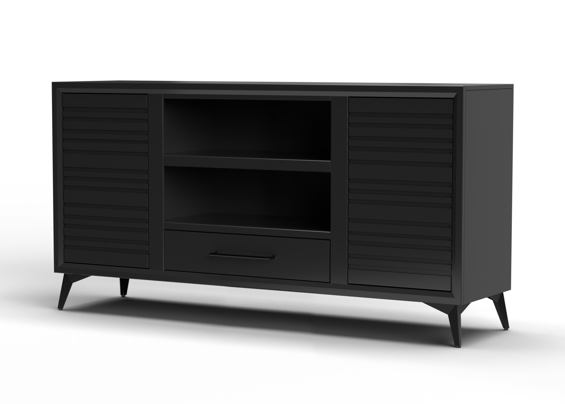 Bring home the Malibu 64” TV Stand from Realcozy for a sophisticated and upscale addition to your living room or great room. Artfully crafted from Solid Wood and Veneers, this TV Cabinet is available in five showstopping finishes and features two doors with horizontal slat details, three shelves, one drawer, Satin Black hardware and angled metal feet. This large TV stand will accommodate TVs up to 70 inches and provide ample storage for gaming and media consoles making it a versatile TV Stand for bedroom and living room. Cable management openings on the back panel will keep every cord and wire concealed. Fully assembled upon arrival, this TV Console from Realcozy is ready to unbox and enjoy. This sensational TV Console will make a glamorous statement in your modern home.