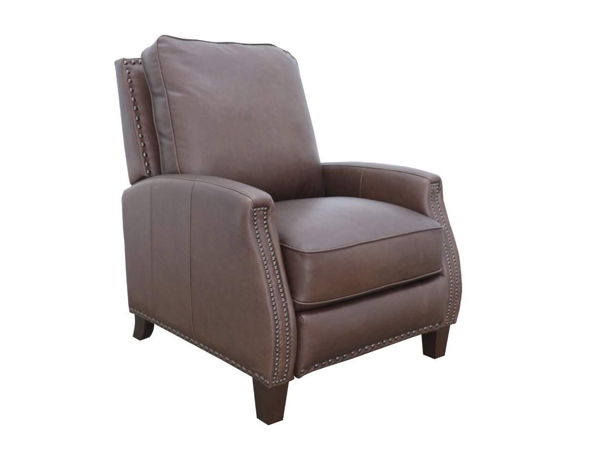 The transitional design style of this recliner makes it a versatile addition to any home decor, and the dark walnut finish with chocolate-colored leather upholstery adds a rich and inviting touch. With its pocket coil springs and down blend feather wrap, this recliner provides excellent support and comfort for hours of relaxation.