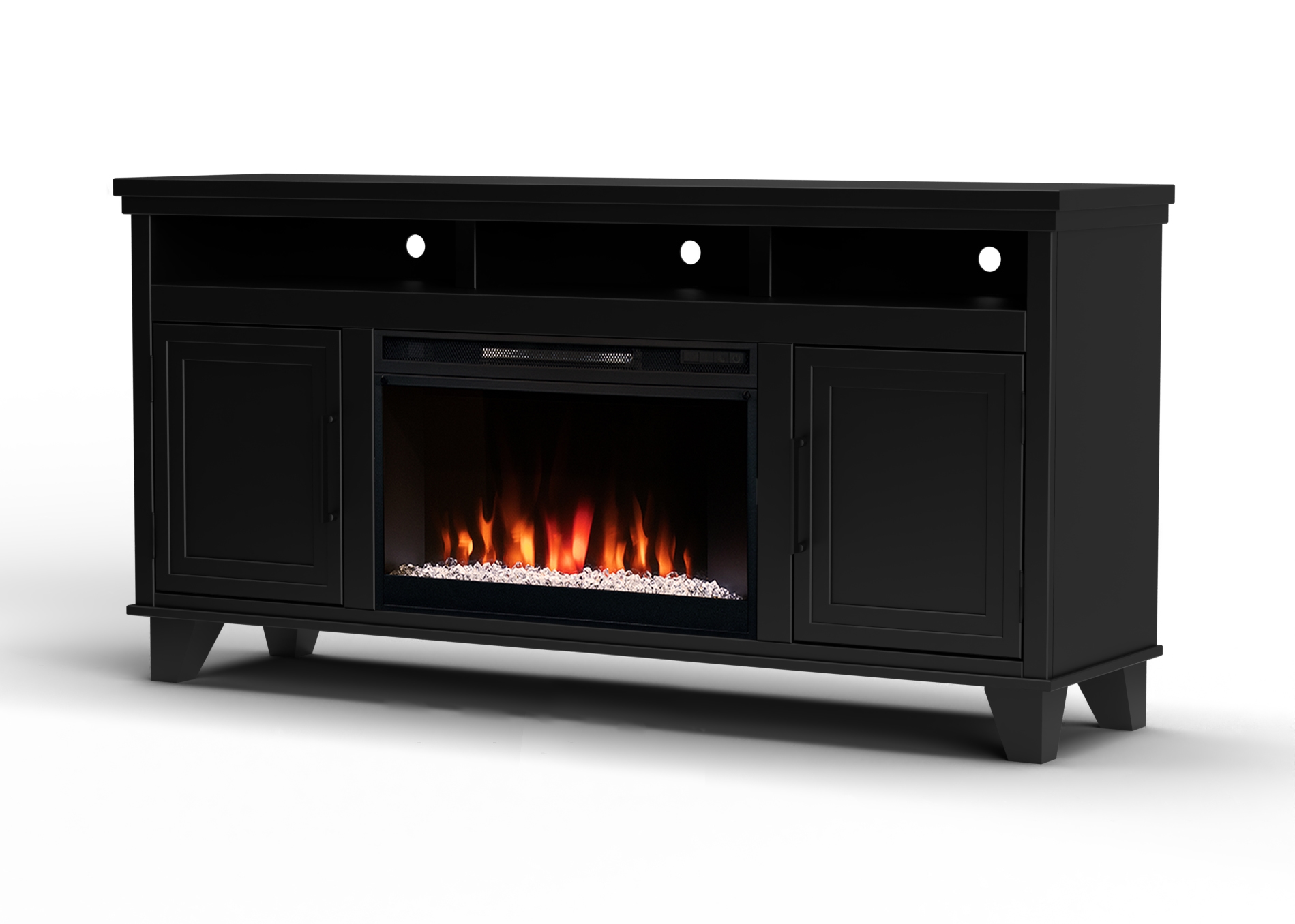 As a made-in-theUSA product, you can trust that this TV stand is built with quality and attention to detail. The black finish gives it a sleek and sophisticated look that will fit seamlessly into your home. Whether you're looking to upgrade your living room or create a cozy entertainment space, this 64" fireplace TV stand is the perfect choice.