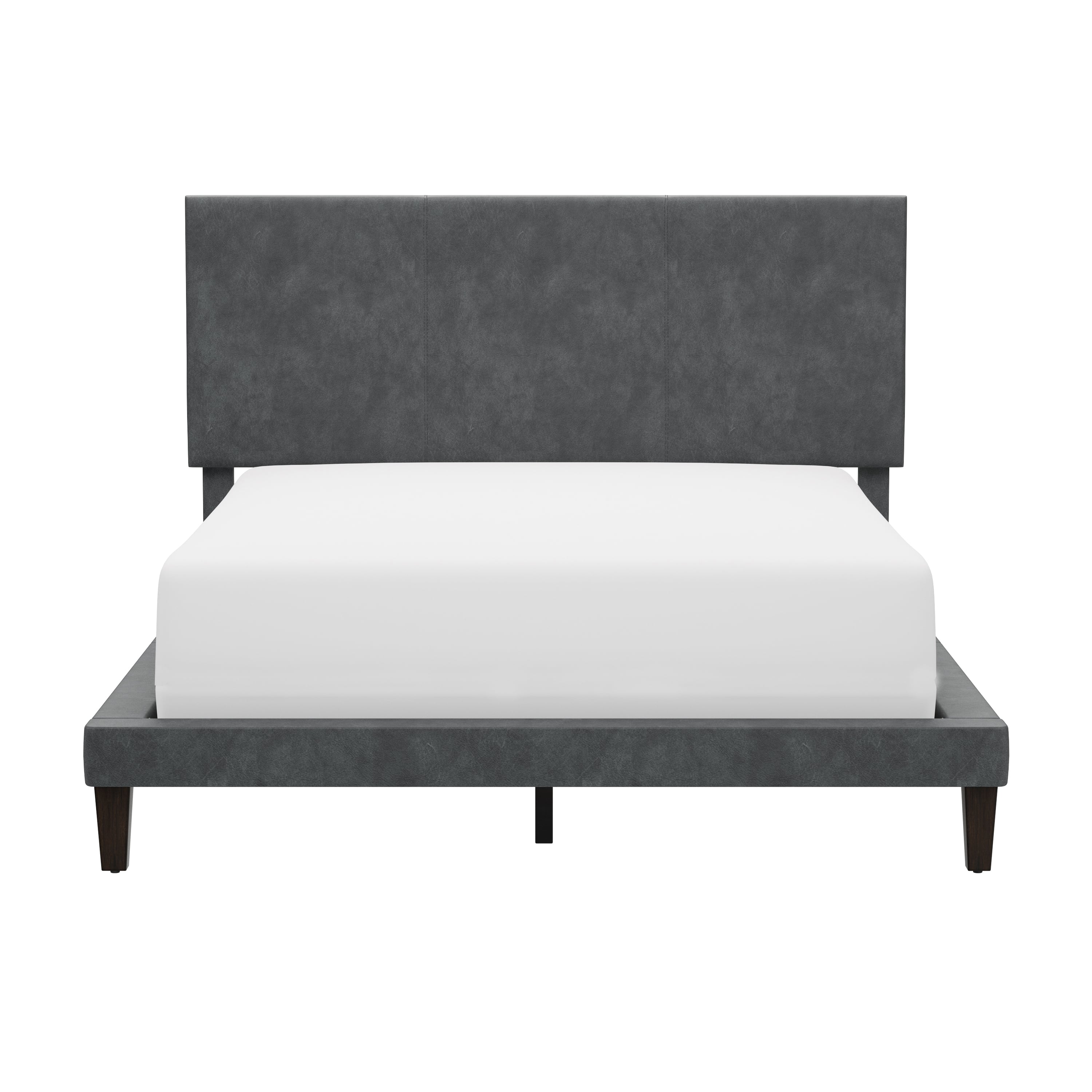 Is your bedroom overdue for an update? Slimmed down style is all the rage and this stunning wide rail full size platform bed is the instant refresh your space needs. Bring your vision to life with a dramatic padded headboard and wide side rails upholstered in fashion-forward graphite gray vinyl. Keep your gotta-have gadgets charged and close at hand with two built-in dual USB ports conveniently located on each side of the headboard. Includes headboard, side rails, bed frame, and support slats. No box spring necessary and mattress not included.