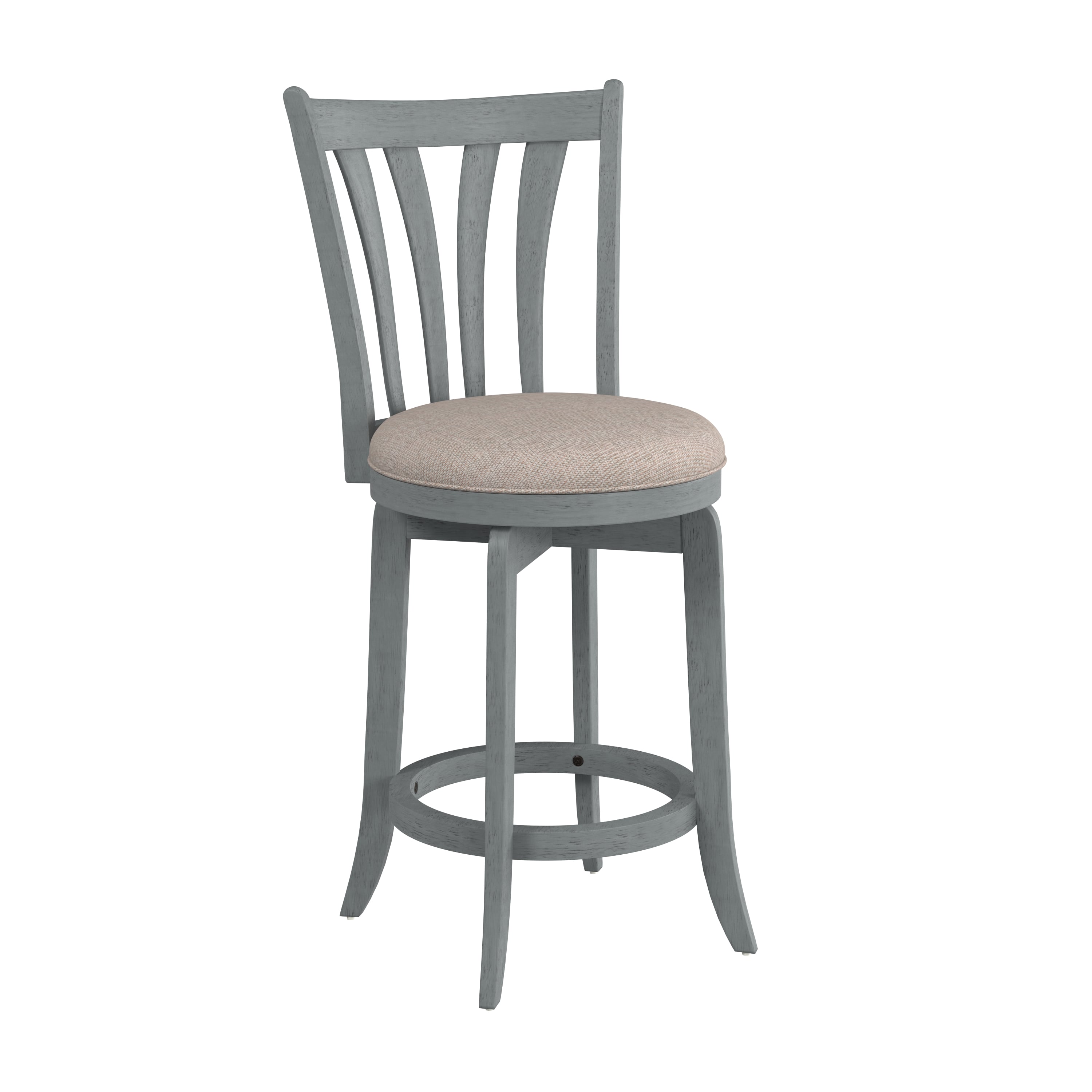 If familiar and inviting decor are hallmarks of your interior style, you need pieces that have a story. With this transitional-style Counter Stool, get the charm of vintage paired with new construction. Crafted with a clean-lined frame styled with a blue wire brush finish that looks like naturally aged wood, and a neutral cream upholstery that offers texture and durability, this 360-degree swivel counter stool with its high, flared back will be the perfect spot to create memories and share traditions for years to come.