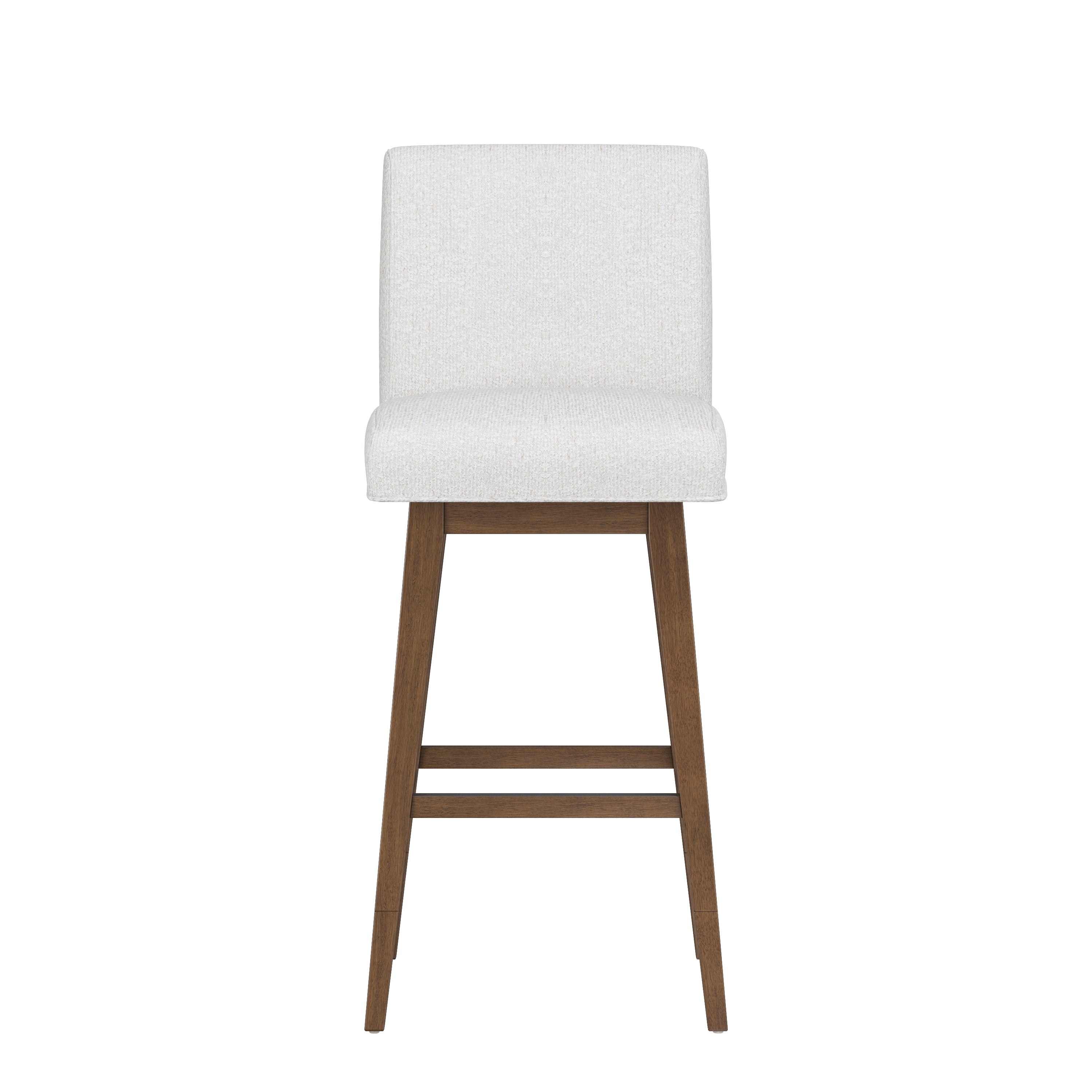 Curate your dining experience with this premium, adjustable-height stool with customizable features, such as a solid wood base with steel-reinforced leg extensions. This seat showcases clean lines and a casual transitional aesthetic, and the detachable swivel plate enables either a 360-degree swivel or a stationary setting. Upholstered in a neutral salt shade, this kid-friendly, pet-friendly fabric is stain resistant and easy to clean, and it complements the medium brown finish of the base.