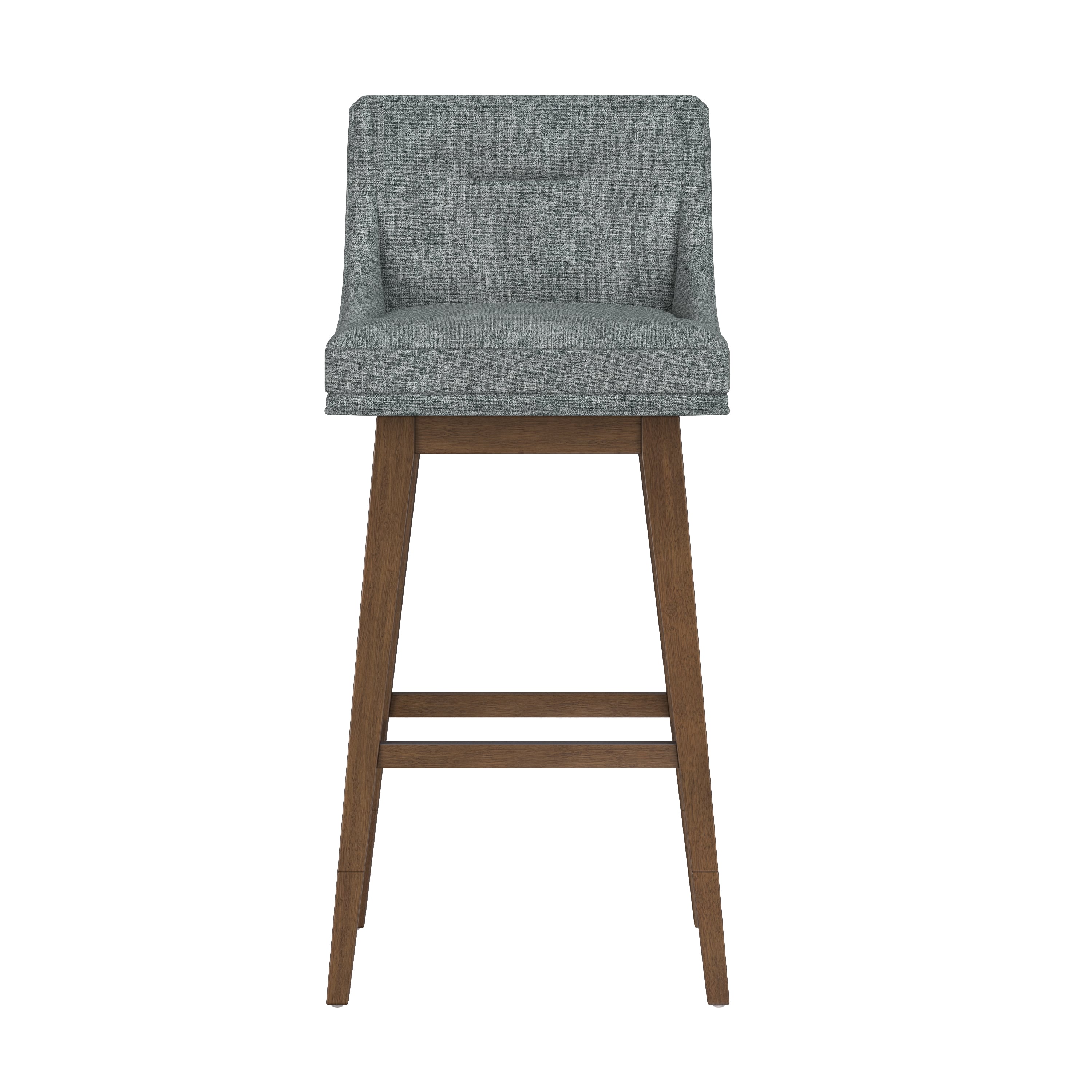 Curate your dining experience with this premium, adjustable-height stool with customizable features, such as a solid wood base with steel-reinforced leg extensions. This seat is characterized by its arms that gently slope toward the base, resulting in a sleek, casual transitional appearance, and the detachable swivel plate enables either a 360-degree swivel or a stationary setting. Upholstered in a neutral graphite shade, this kid-friendly, pet-friendly fabric is stain resistant and easy to clean, and it complements the medium brown finish of the base.