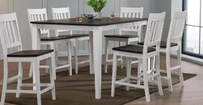 The table's white finish gives it a bright and airy feel, while the black oak accents add warmth and depth. The counter-height design creates a comfortable and casual dining experience, perfect for everyday meals or special occasions. With its sturdy legs and durable wood construction, this table is built to last and provide years of reliable service.