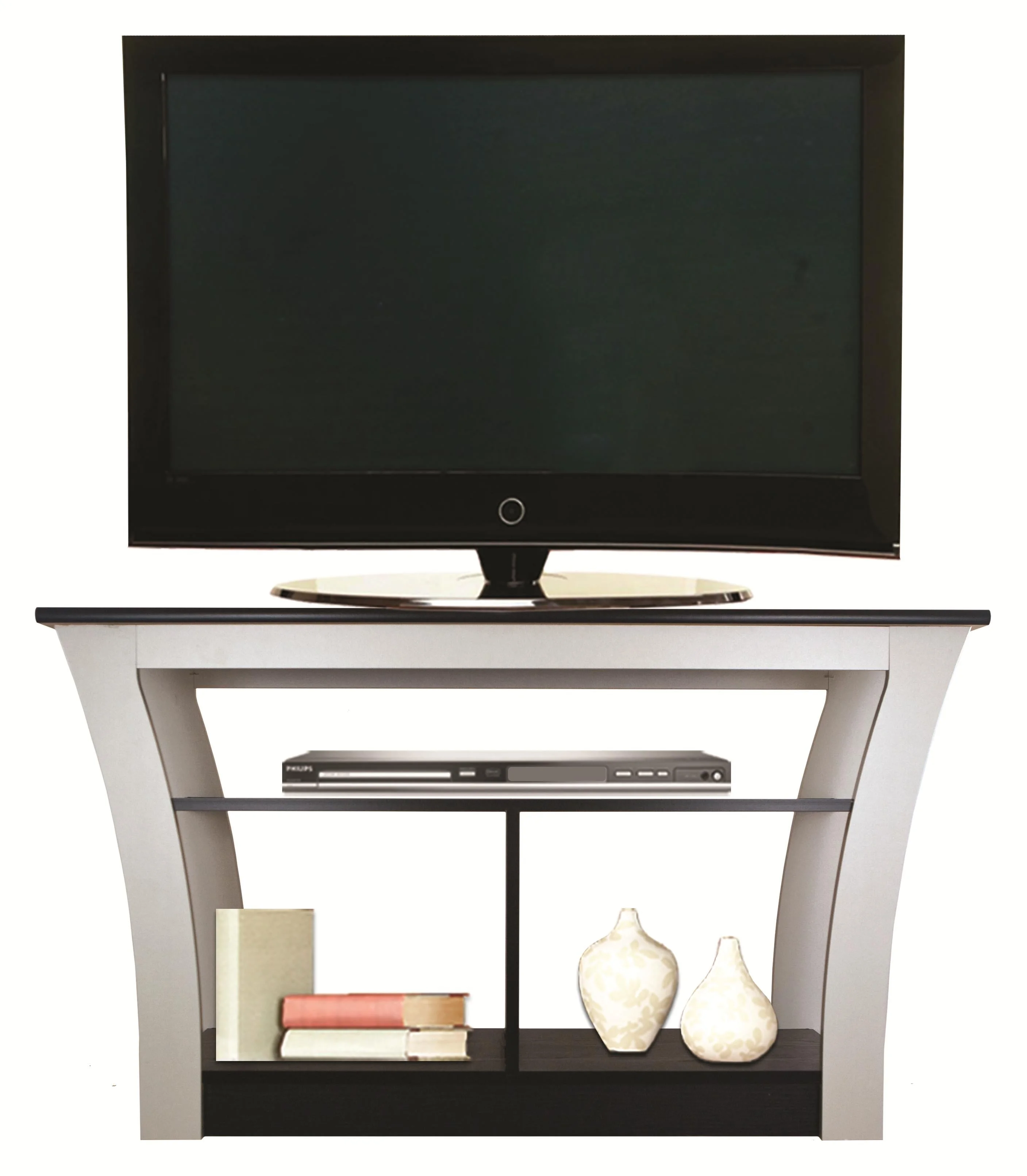 moreConveniently use this table to hold your entertainment equipment or as a modern occasional table around your bedroom, living room, or den. It features two lower compartments for display or storage and one longer compartment great for holding dvd players and gaming consoles. Completed with a moisture resistant surface to protect the finish, this stand's contemporary style and sleek design are a great fit for any room. This stand is available in solid black and black and platinum.