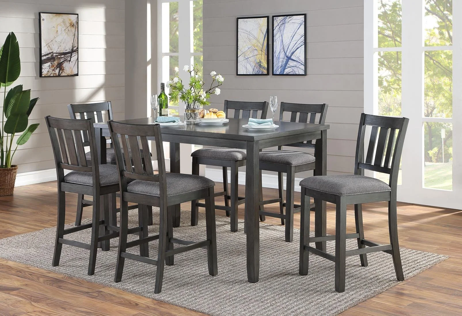 The Glendale Transitional Counter Height Dining Table with Upholstered Slat Back Shairs, made by Urban Styles,