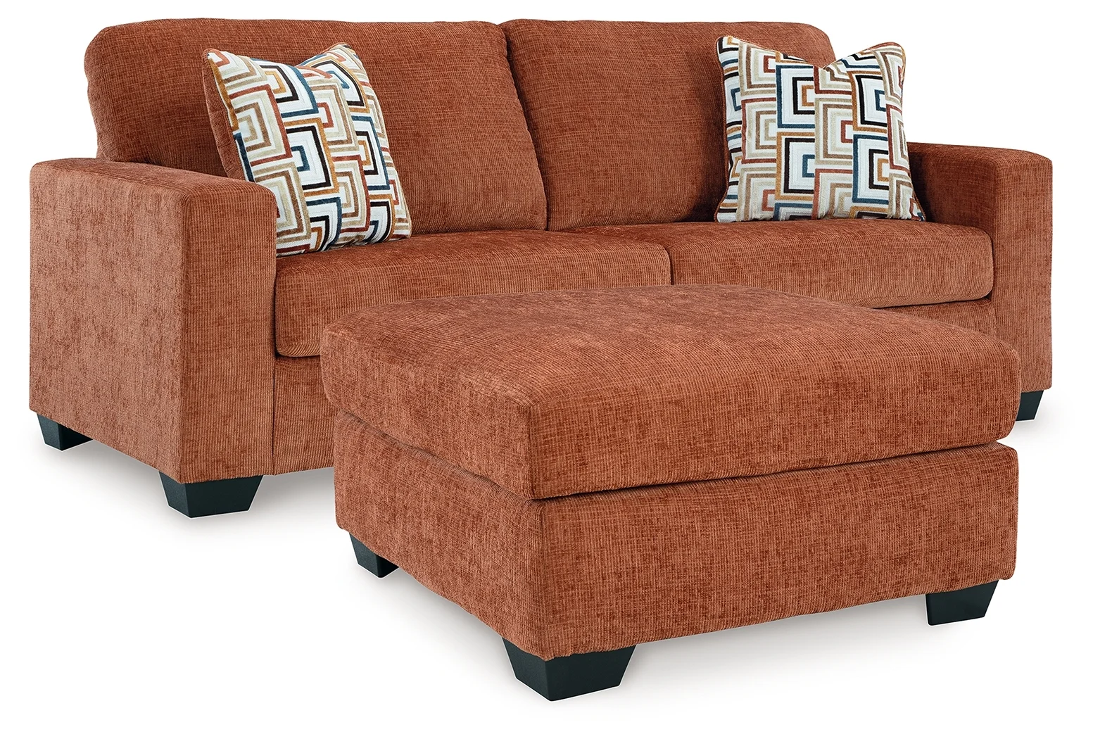 moreLooking to make a bold statement with color? Liven up your living room with this seating package. Its trend-right burnt orange upholstery adds a playful pop of color to your decor. Bold and eclectic accent pillows complete the look. Pairing posh style with everyday comfort, this set is a welcome addition to contemporary spaces.