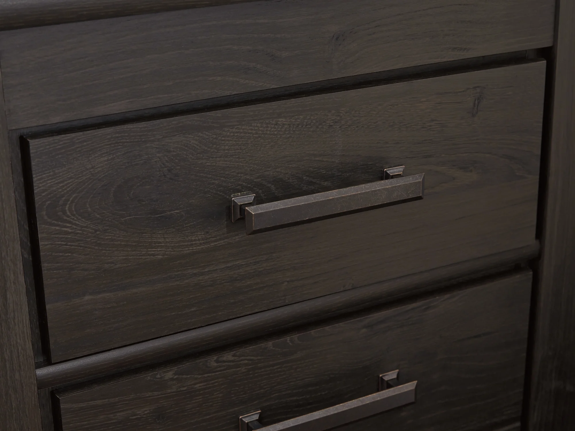 Made with engineered wood (MDF/particleboard/plywood) and decorative laminate for the right balance of affordability and durability, Dark charcoal finish over replicated oak grain, 7 smooth-gliding drawers; 3 drawer sizes, Linear pulls with dark pewter-tone finish, Safety is a top priority, clothing storage units are designed to meet the most current standard for stability, ASTM F 2057 (ASTM International), Drawers extend out to accommodate maximum access to drawer interior while maintaining safety, Assembly required