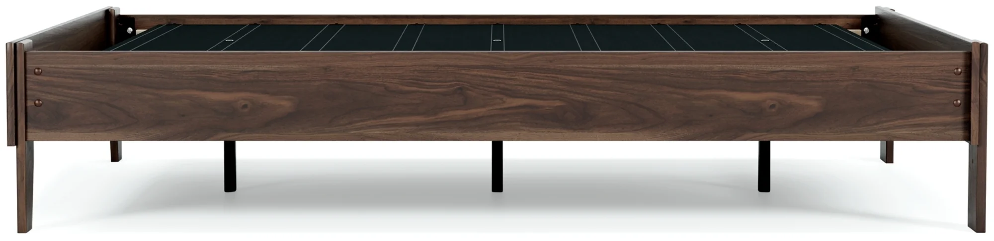 Full platform bed (does not include headboard), Made with engineered wood (MDF/particleboard/plywood) and decorative laminate for the right balance of affordability and durability, Rich brown finish over replicated walnut wood grain with authentic touch, Bed does not require additional foundation/box spring; accommodates most zero clearance adjustable bases, Mattress available, sold separately, Assembly required