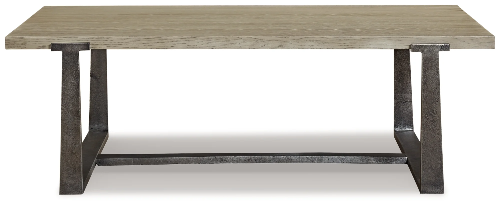 moreThis coffee table provides a distinctly welcoming and robust presence in any home. Its charming industrial character, functional strength and clean silhouette sketch the exceptional taste of the host. Merging with a wide range of interior arrangements, its exquisite workmanship creates a truly unique vibe. 2 Matching end tables included.
