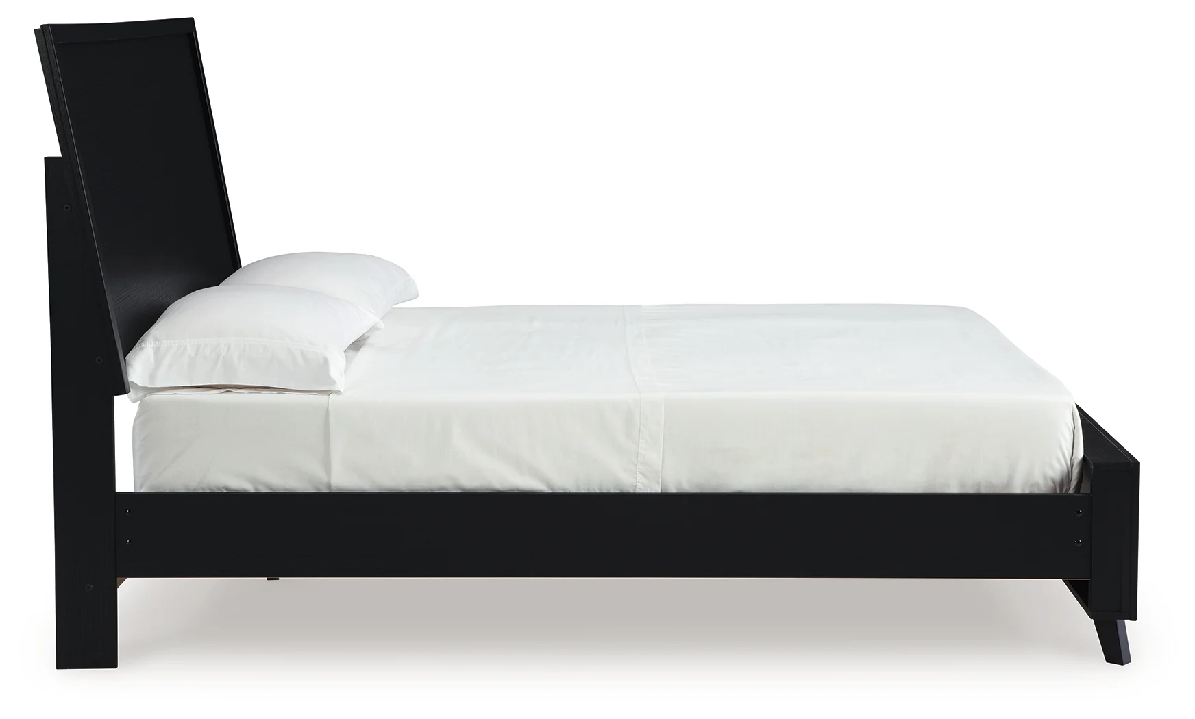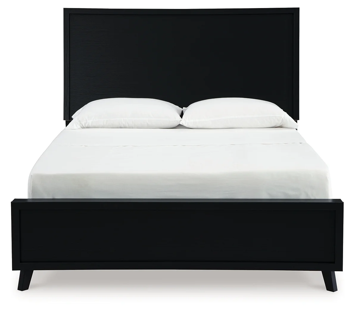 moreSophisticated style for the savvy shopper. This panel bed prioritizes affordable, on-trend design. Its subtle replicated texture recalls the natural beauty of wood, highlighting the clean-lined styling. And a matte black finish suits different approaches to modern aesthetics. Mix and match with light and bright hues, or pair with other dark tones for a moody look.
