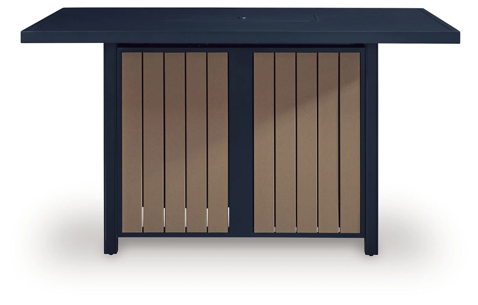 The East Beach Outdoor Bar Table With Fire Pit, made by Signature Design by Ashley,