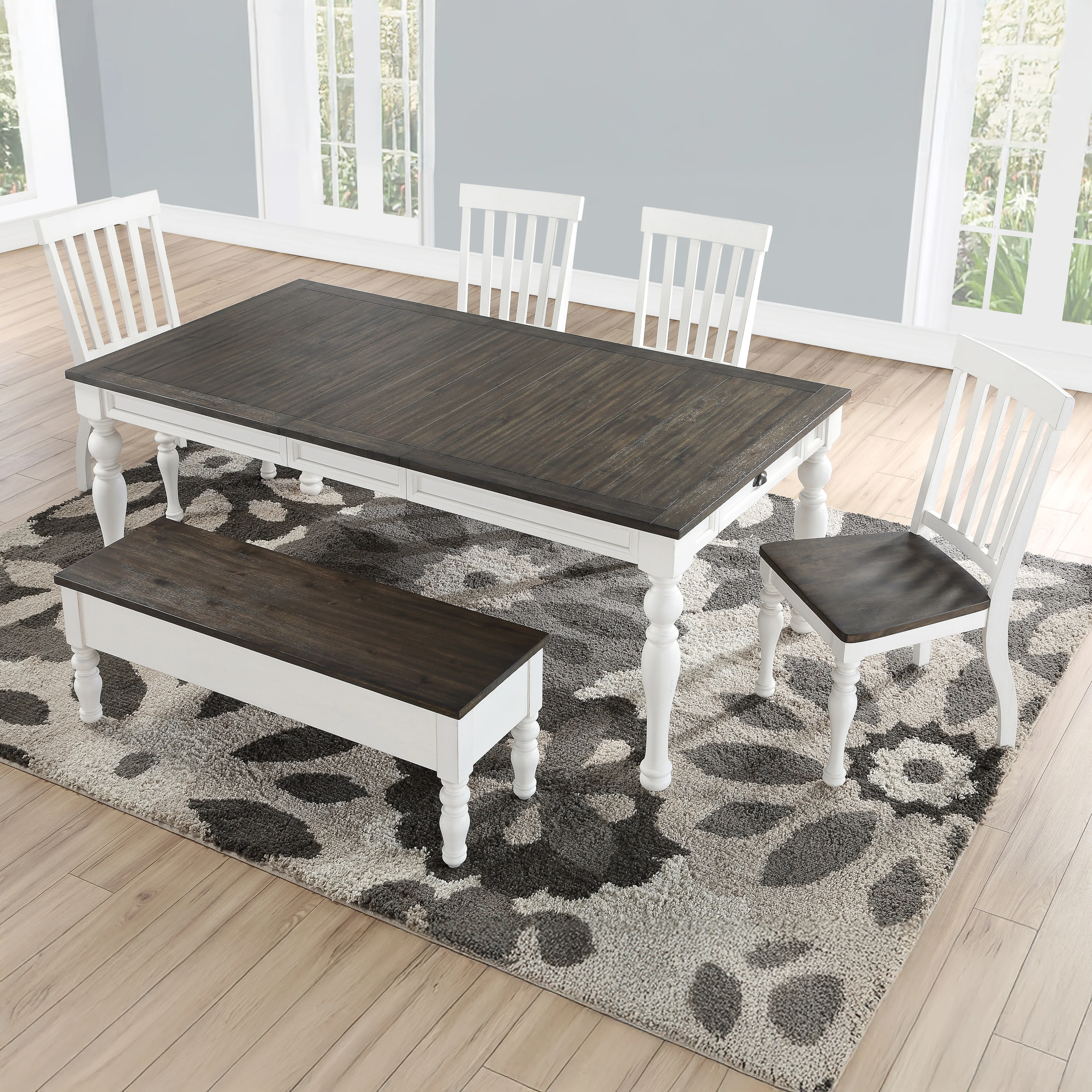 This farmhouse dining room collection features timeless designs with turned legs and a light two-tone finish. Perfect for a breakfast nook or smaller dining room, the collection will be an easy addition to any home with its versatile style.