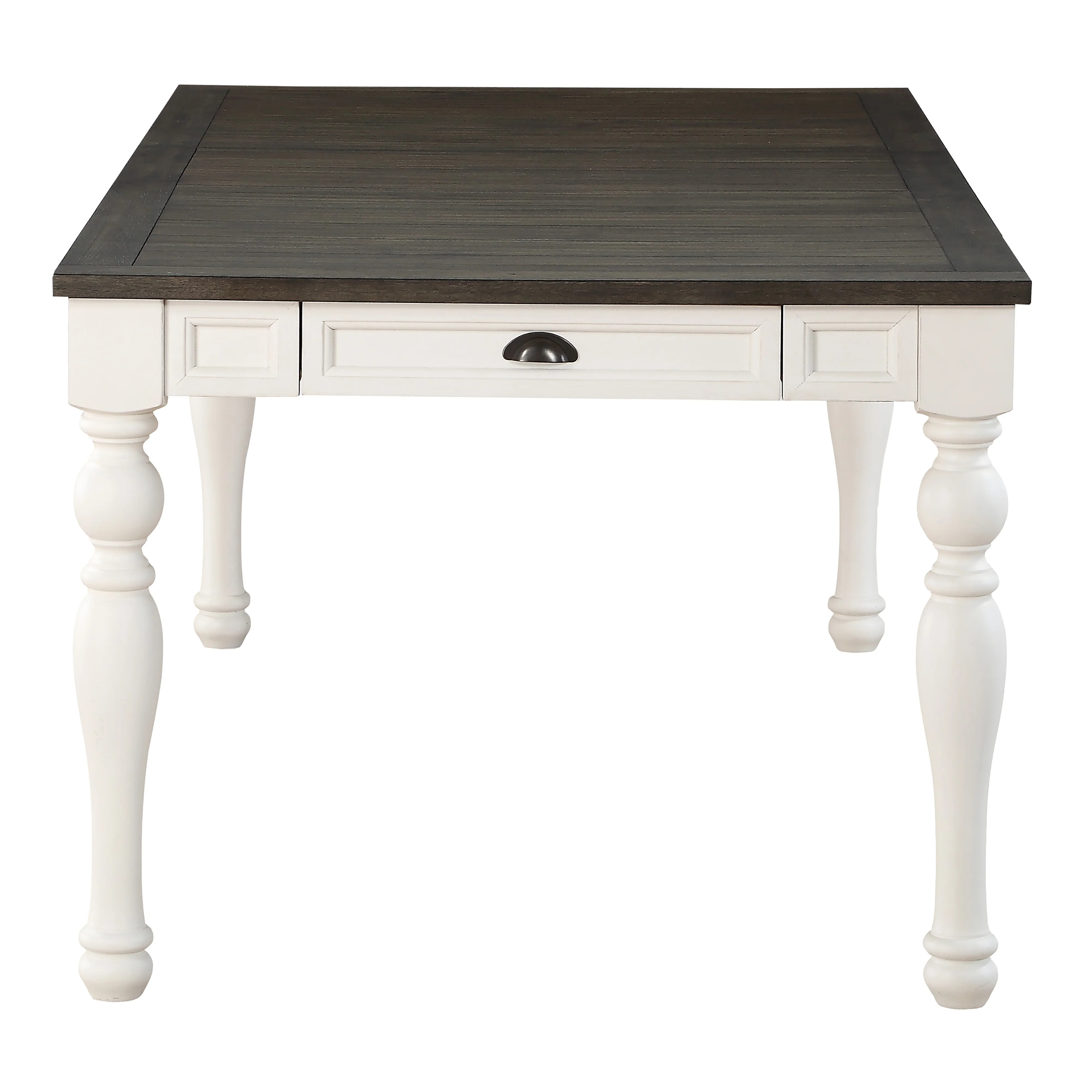 moreThis dining table has a timeless style with turned legs and a wonderful two-tone finish. The table has drawers located on the ends for convenient dining storage space.