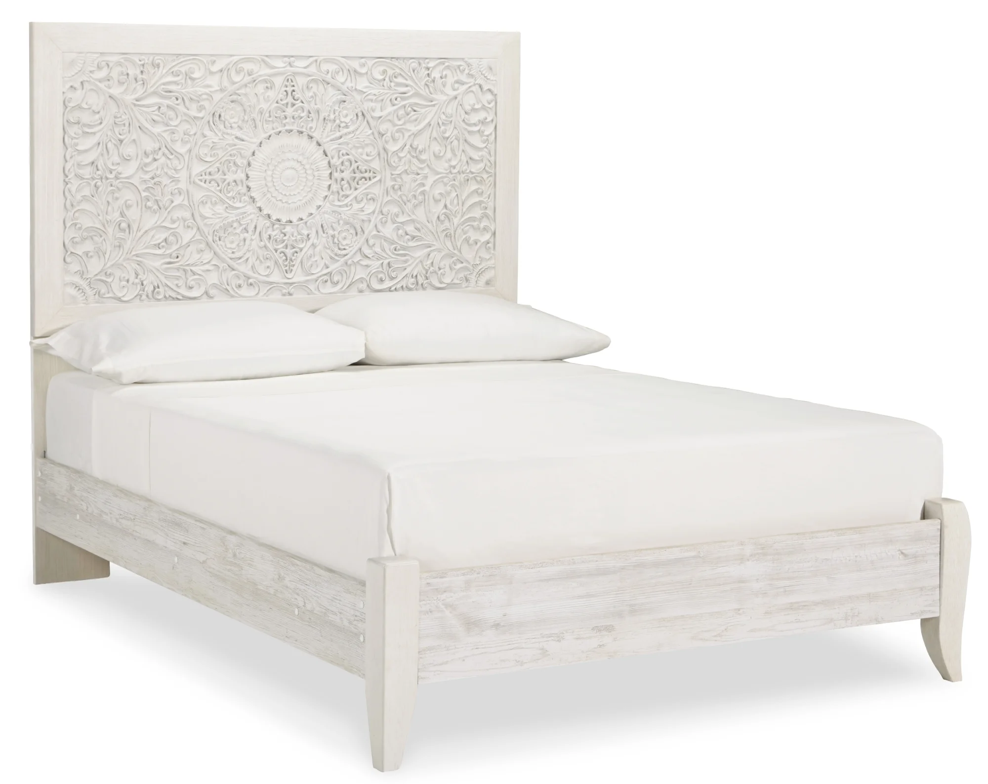 moreYour trendsetting mini-me can live out her elegant bohemian dreams with this full panel bedroom set. Exquisite carved medallion pattern is a testament to true style. Charming whitewashed finish sets a foundation for bedding bursting with color. Headboard legs have four height options to grow with your child.
